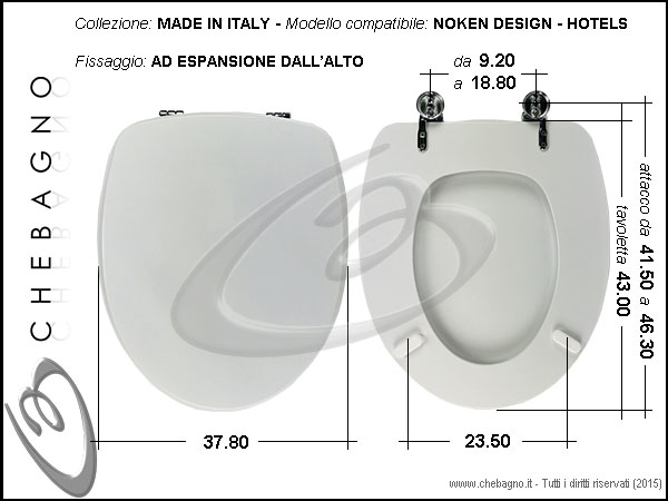 IMPORTANTE: Prima dell'acquisto controllare la corrispondenza delle misure della scheda tecnica con il sanitario.