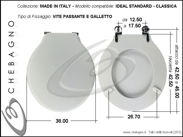 IMPORTANTE: Prima dell'acquisto controllare la corrispondenza delle misure della scheda tecnica con il sanitario.