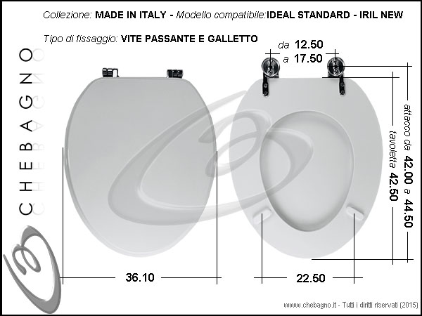 IMPORTANTE: Prima dell'acquisto controllare la corrispondenza delle misure della scheda tecnica con il sanitario.