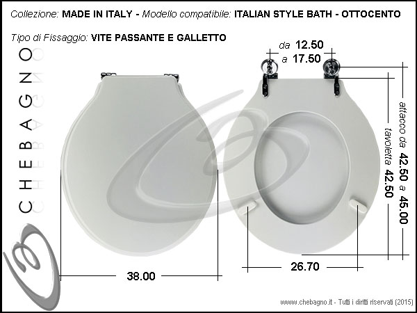 IMPORTANTE: Prima dell'acquisto controllare la corrispondenza delle misure della scheda tecnica con il sanitario.