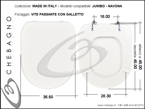 IMPORTANTE: Prima dell'acquisto controllare la corrispondenza delle misure della scheda tecnica con il sanitario.