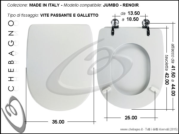 IMPORTANTE: Prima dell'acquisto controllare la corrispondenza delle misure della scheda tecnica con il sanitario.