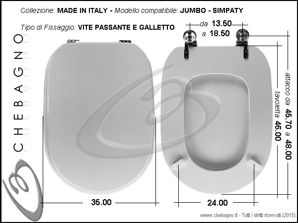 IMPORTANTE: Prima dell'acquisto controllare la corrispondenza delle misure della scheda tecnica con il sanitario.
