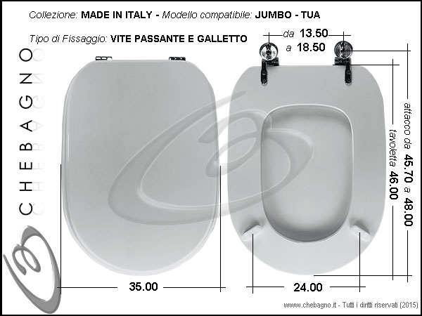 IMPORTANTE: Prima dell'acquisto controllare la corrispondenza delle misure della scheda tecnica con il sanitario.