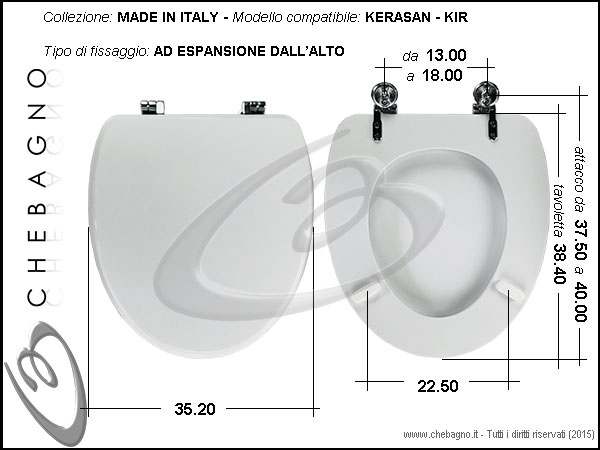 IMPORTANTE: Prima dell'acquisto controllare la corrispondenza delle misure della scheda tecnica con il sanitario.
