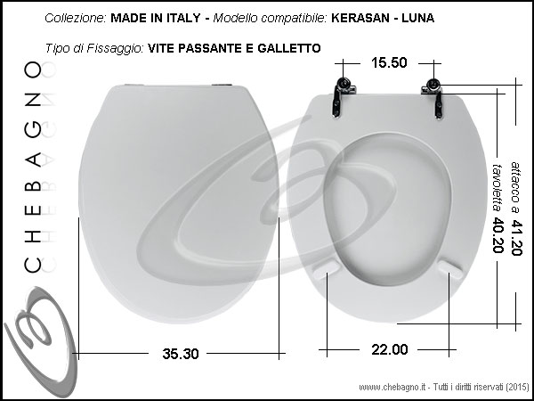 IMPORTANTE: Prima dell'acquisto controllare la corrispondenza delle misure della scheda tecnica con il sanitario.