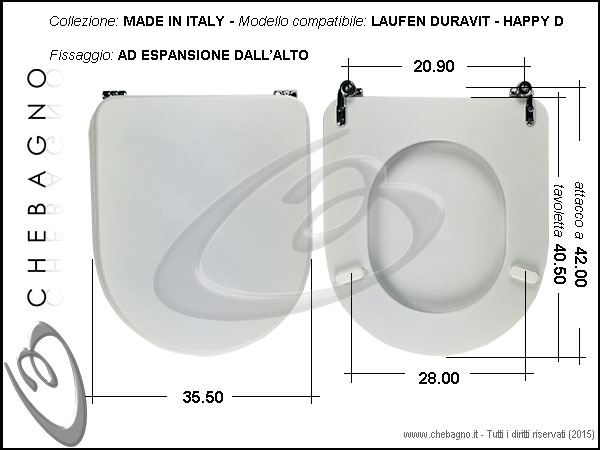 IMPORTANTE: Prima dell'acquisto controllare la corrispondenza delle misure della scheda tecnica con il sanitario.