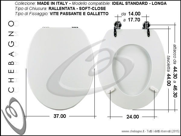 COPRIWATER LONGA IDEAL STANDARD CHIUSURA RALLENTATA - SOFT-CLOSE - Disponibile in 63 Colori + Essenze in Legno + Made in Italy. Qualità TOP. Copriwater compreso di cerniere e paracolpi.