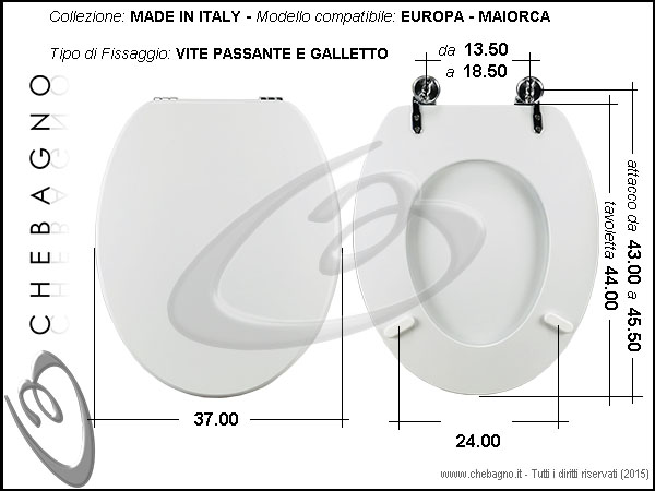 IMPORTANTE: Prima dell'acquisto controllare la corrispondenza delle misure della scheda tecnica con il sanitario.