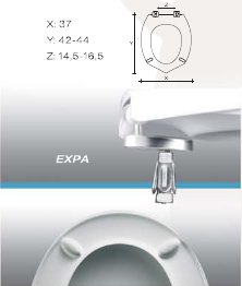 Finitura: Bianco e Cerniere in Acciaio Inox ad espansione con dispositivo Take Off, ossia copriwater removibile con un semplice gesto, per facilitare le normali operazioni di pulizia. Cerniere nella versione con fissaggio ad espansione con fori da 13 a 17 mm. Fissaggio dall'alto.