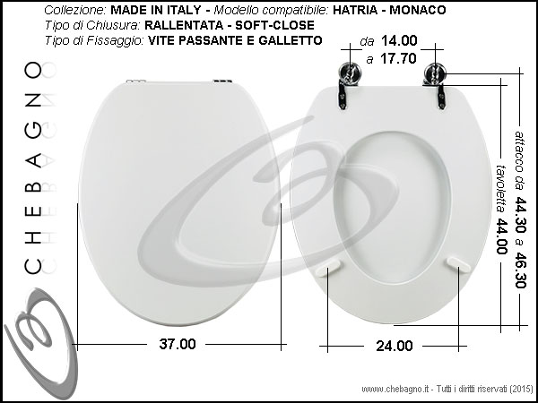 IMPORTANTE: Prima dell'acquisto controllare la corrispondenza delle misure della scheda tecnica con il sanitario.