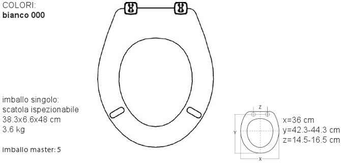 IMPORTANTE: Prima dell'acquisto controllare la corrispondenza delle misure della scheda tecnica con il sanitario. X = Larghezza; Y = Profondità; Z = Interasse Cerniere