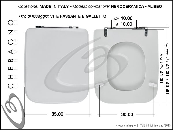 IMPORTANTE: Prima dell'acquisto controllare la corrispondenza delle misure della scheda tecnica con il sanitario.