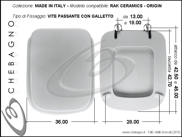 IMPORTANTE: Prima dell'acquisto controllare la corrispondenza delle misure della scheda tecnica con il sanitario.