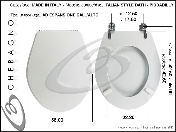 IMPORTANTE: Prima dell'acquisto controllare la corrispondenza delle misure della scheda tecnica con il sanitario.