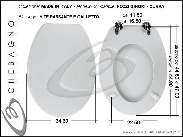 IMPORTANTE: Prima dell'acquisto controllare la corrispondenza delle misure della scheda tecnica con il sanitario.