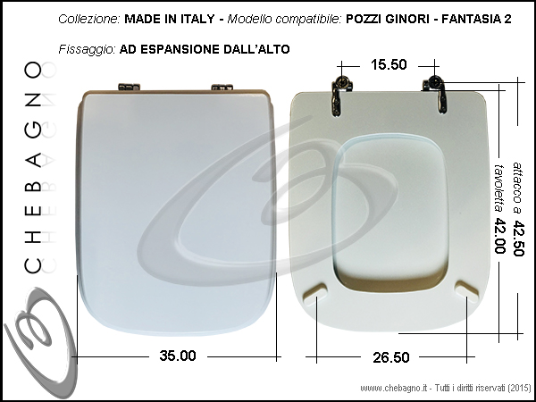 IMPORTANTE: Prima dell'acquisto controllare la corrispondenza delle misure della scheda tecnica con il sanitario.