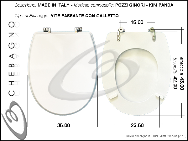 IMPORTANTE: Prima dell'acquisto controllare la corrispondenza delle misure della scheda tecnica con il sanitario.