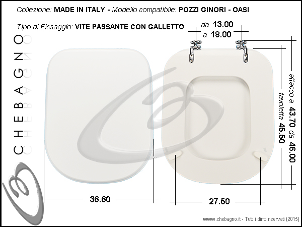 IMPORTANTE: Prima dell'acquisto controllare la corrispondenza delle misure della scheda tecnica con il sanitario.