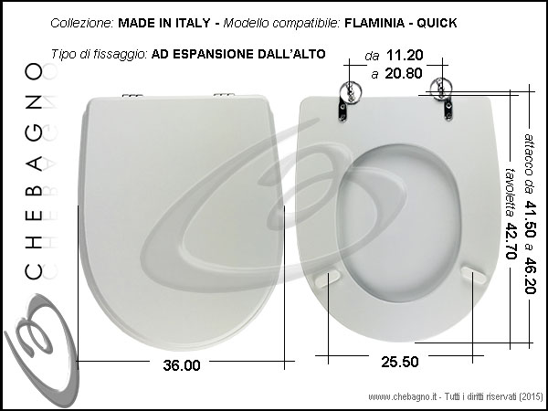 IMPORTANTE: Prima dell'acquisto controllare la corrispondenza delle misure della scheda tecnica con il sanitario.