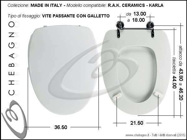 IMPORTANTE: Prima dell'acquisto controllare la corrispondenza delle misure della scheda tecnica con il sanitario.