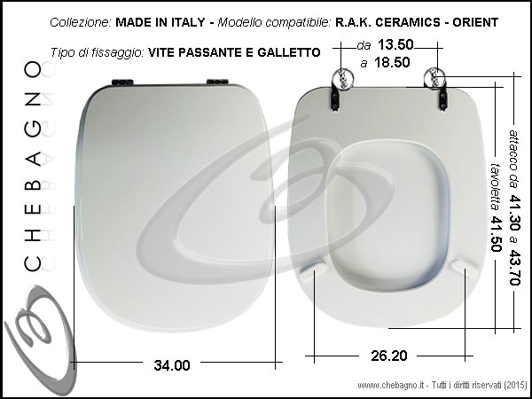 IMPORTANTE: Prima dell'acquisto controllare la corrispondenza delle misure della scheda tecnica con il sanitario.