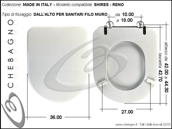 COPRIWATER RENO SHIRES disponibile in 63 Colori + Essenze in Legno + Made in Italy. Qualità TOP. Copriwater compreso di cerniere e paracolpi.