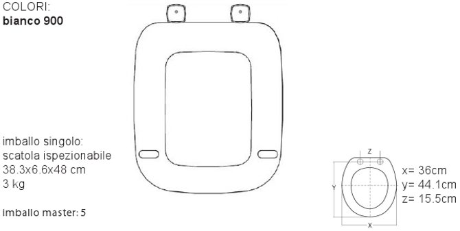 IMPORTANTE: Prima dell'acquisto controllare la corrispondenza delle misure della scheda tecnica con il sanitario. X = Larghezza; Y = Profondità; Z = Interasse Cerniere
