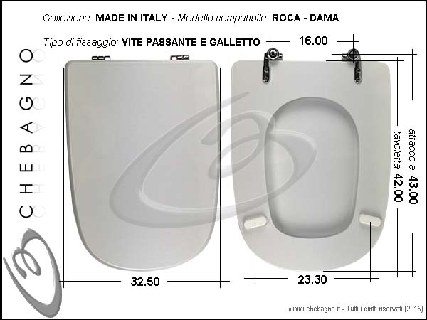 IMPORTANTE: Prima dell'acquisto controllare la corrispondenza delle misure della scheda tecnica con il sanitario.