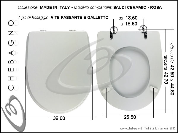 IMPORTANTE: Prima dell'acquisto controllare la corrispondenza delle misure della scheda tecnica con il sanitario.