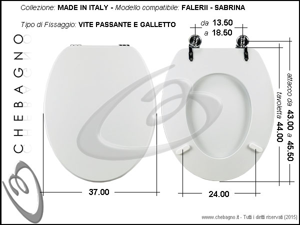 IMPORTANTE: Prima dell'acquisto controllare la corrispondenza delle misure della scheda tecnica con il sanitario.