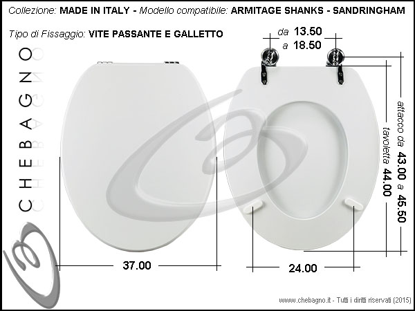IMPORTANTE: Prima dell'acquisto controllare la corrispondenza delle misure della scheda tecnica con il sanitario.