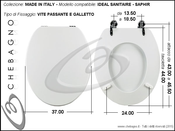 IMPORTANTE: Prima dell'acquisto controllare la corrispondenza delle misure della scheda tecnica con il sanitario.