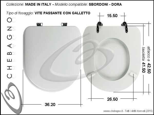 IMPORTANTE: Prima dell'acquisto controllare la corrispondenza delle misure della scheda tecnica con il sanitario.