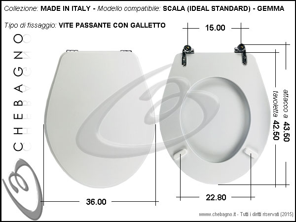 IMPORTANTE: Prima dell'acquisto controllare la corrispondenza delle misure della scheda tecnica con il sanitario.