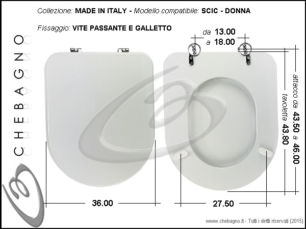 IMPORTANTE: Prima dell'acquisto controllare la corrispondenza delle misure della scheda tecnica con il sanitario.