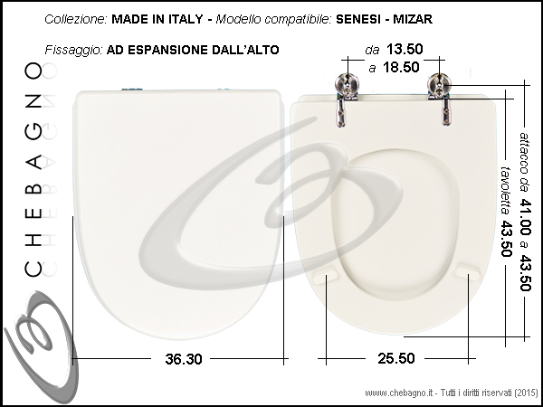 IMPORTANTE: Prima dell'acquisto controllare la corrispondenza delle misure della scheda tecnica con il sanitario.
