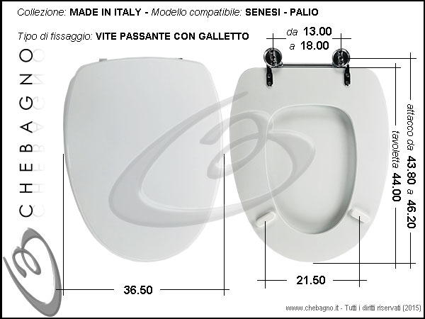 IMPORTANTE: Prima dell'acquisto controllare la corrispondenza delle misure della scheda tecnica con il sanitario.