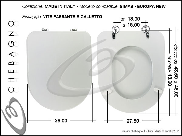 IMPORTANTE: Prima dell'acquisto controllare la corrispondenza delle misure della scheda tecnica con il sanitario.