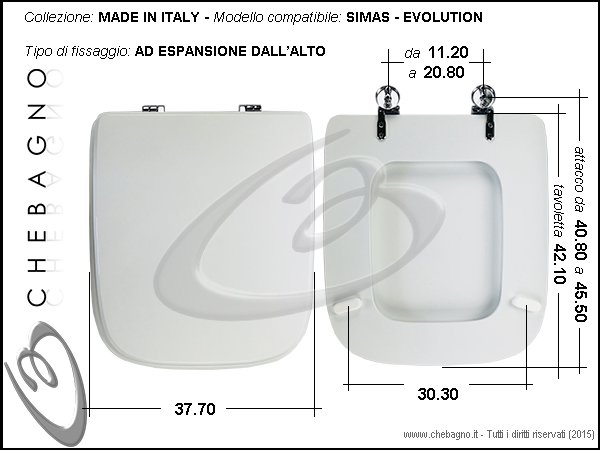 IMPORTANTE: Prima dell'acquisto controllare la corrispondenza delle misure della scheda tecnica con il sanitario.