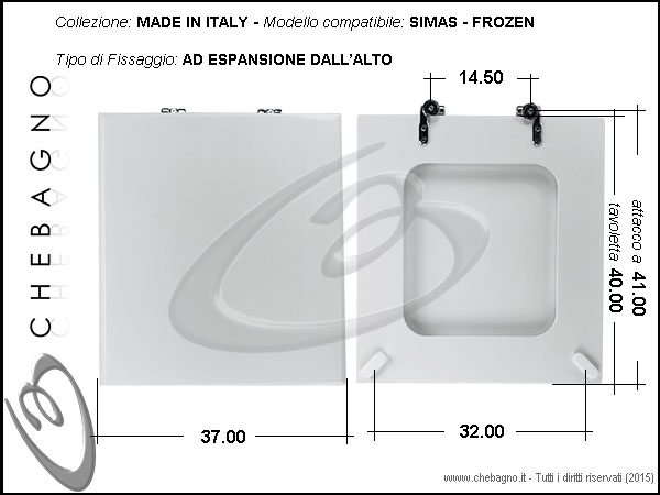 IMPORTANTE: Prima dell'acquisto controllare la corrispondenza delle misure della scheda tecnica con il sanitario.