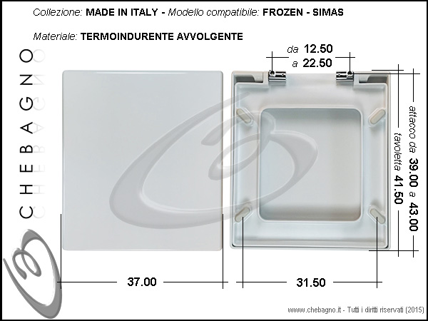 Copriwater SIMAS FROZEN. Sedile wc bianco in termoindurente avvolgente, chiusura libera o soft-close, cerniere in metallo. Copriwater compreso di cerniere e paracolpi.