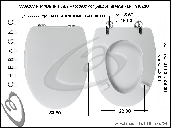 IMPORTANTE: Prima dell'acquisto controllare la corrispondenza delle misure della scheda tecnica con il sanitario.