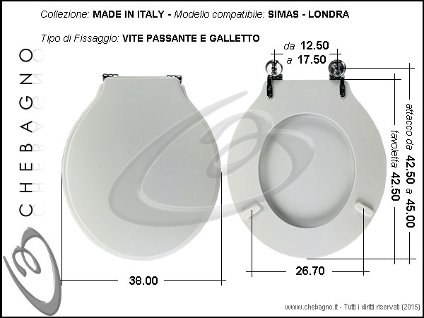 IMPORTANTE: Prima dell'acquisto controllare la corrispondenza delle misure della scheda tecnica con il sanitario.