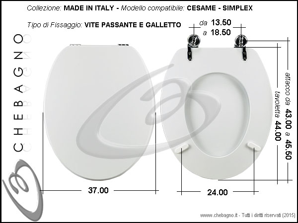 IMPORTANTE: Prima dell'acquisto controllare la corrispondenza delle misure della scheda tecnica con il sanitario.