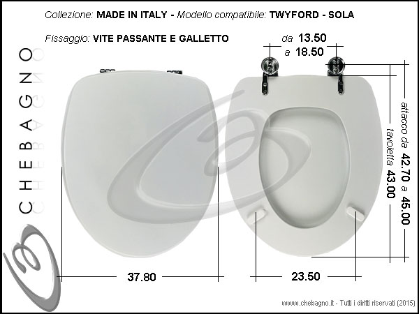 IMPORTANTE: Prima dell'acquisto controllare la corrispondenza delle misure della scheda tecnica con il sanitario.