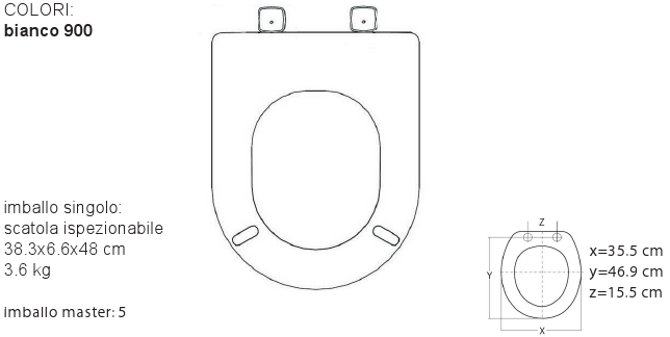 IMPORTANTE: Prima dell'acquisto controllare la corrispondenza delle misure della scheda tecnica con il sanitario. X = Larghezza; Y = Profondità; Z = Interasse Cerniere
