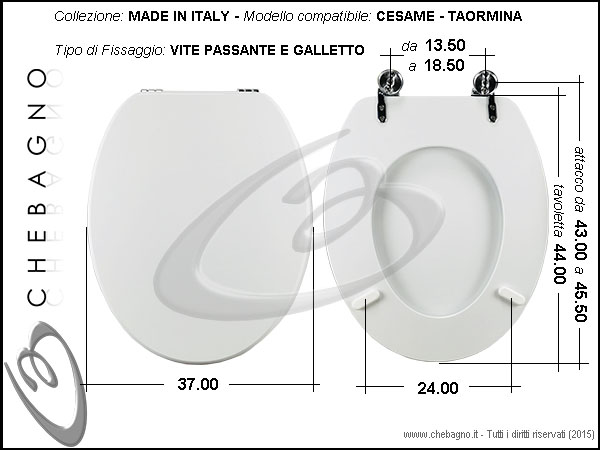 IMPORTANTE: Prima dell'acquisto controllare la corrispondenza delle misure della scheda tecnica con il sanitario.