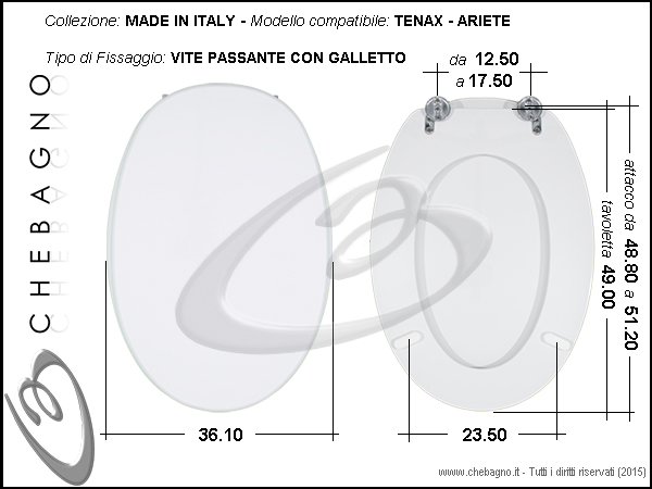 IMPORTANTE: Prima dell'acquisto controllare la corrispondenza delle misure della scheda tecnica con il sanitario.