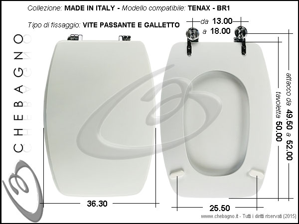 IMPORTANTE: Prima dell'acquisto controllare la corrispondenza delle misure della scheda tecnica con il sanitario.